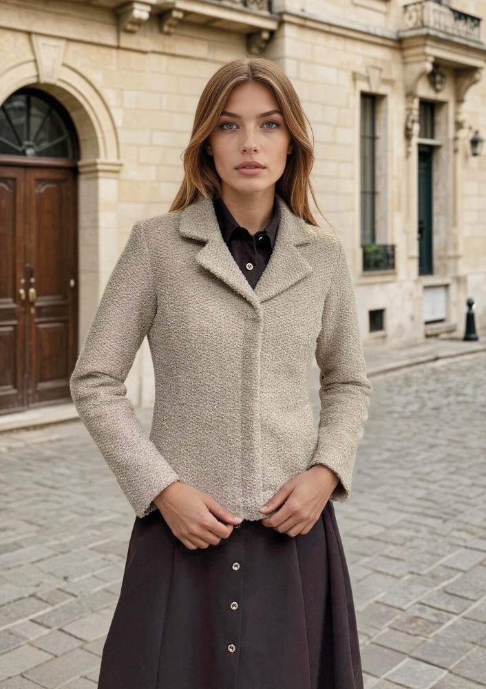 butter colored, linen Magenta jacket, loose fit, front button closure, pockets, front cigar pocket and film print decoration.