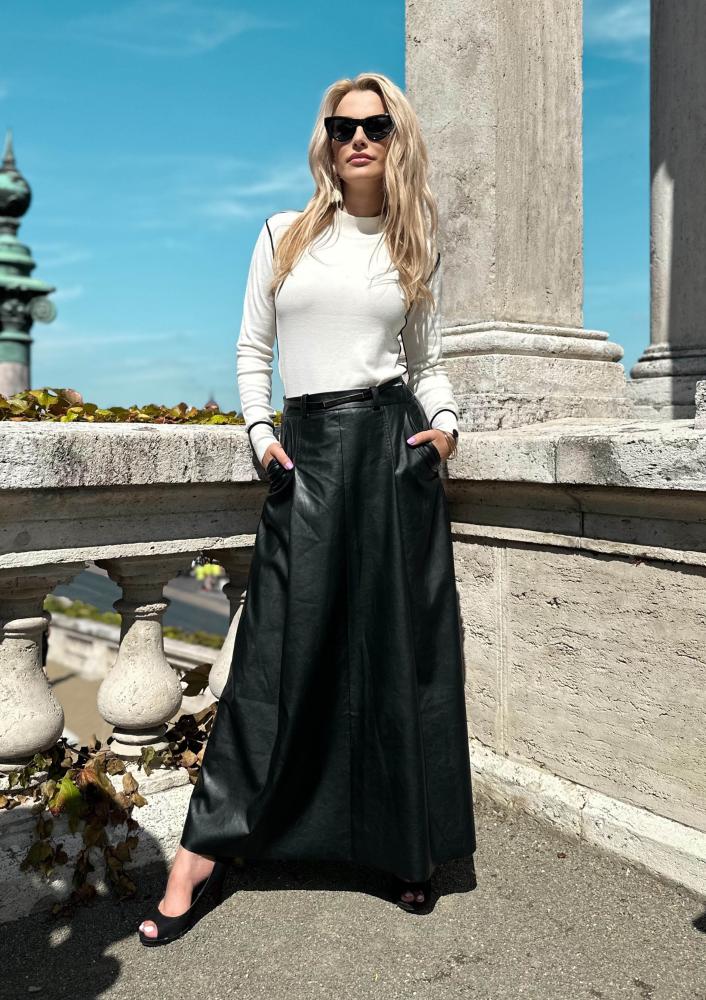 Butter colored, elastic knit Magenta top with stand-up collar. Textile Magenta branding sewn on the side.