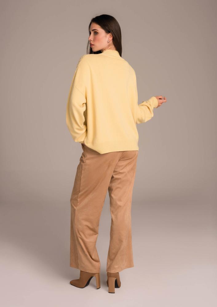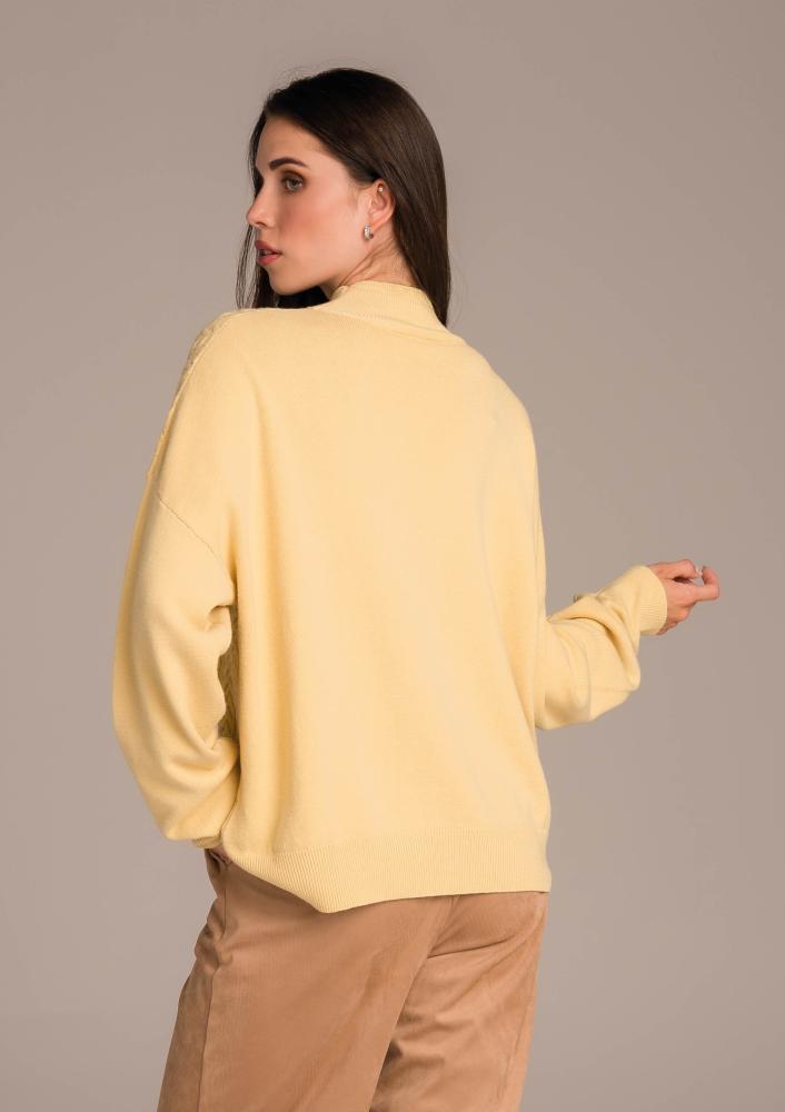 Yellow, Magenta knitted sweater, loose fit, with a turtleneck. Magenta brand logo sewn on the sleeve.
