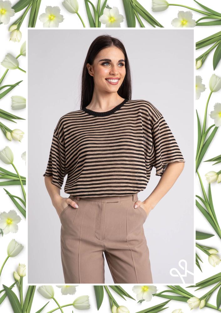 Black, elastic viscose Magenta top, loose fit, with piping on the neck and bottom of the sleeves, film-printed Magenta branding on the front.