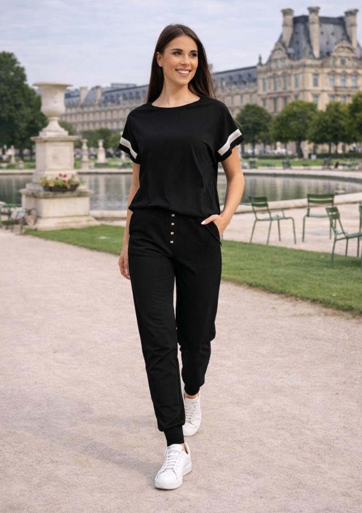 Black Magenta top, loose fit, round neckline, short sleeves. Magenta branding sewn on the back.