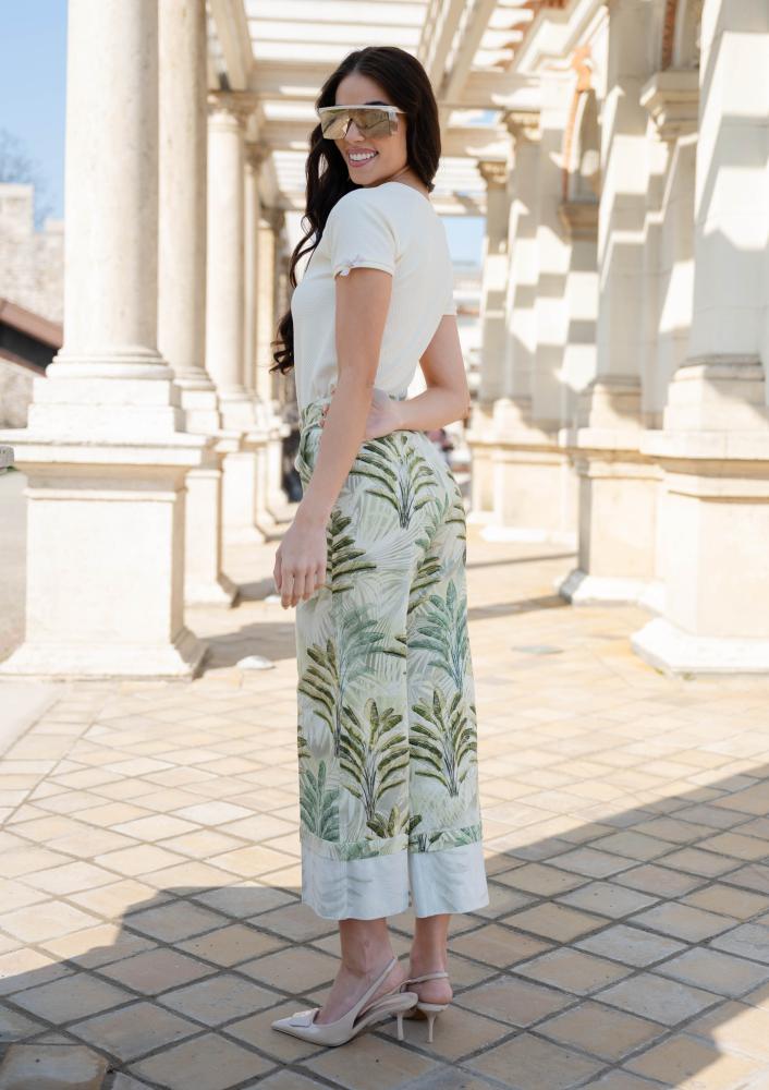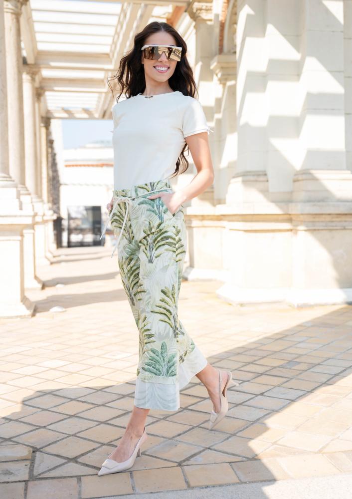 Butter-colored, Magenta top, slim-fit, 3-D pattern, short sleeves, bow decoration on the sleeve. Metal Magenta branding sewn on the front.