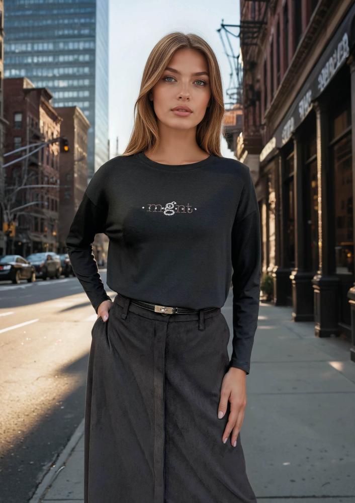 Fekete színű, Magenta felső, laza fazonú, hosszú ujjal. Elején filmnyomott Magenta márkajelzés.
