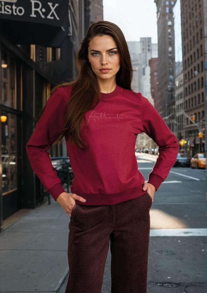 Bordó színű, Magenta felső, laza fazonú, ujján és alján passzéval. Elején filmnyomott Magenta márkajelzés.