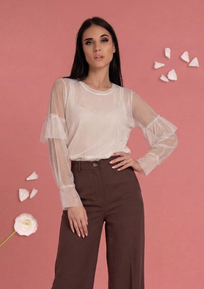 Vaj színű, Magenta felső, elején gombos záródással, tüll ujjal. Oldalán rávarrt textil Magenta márkajelzés.