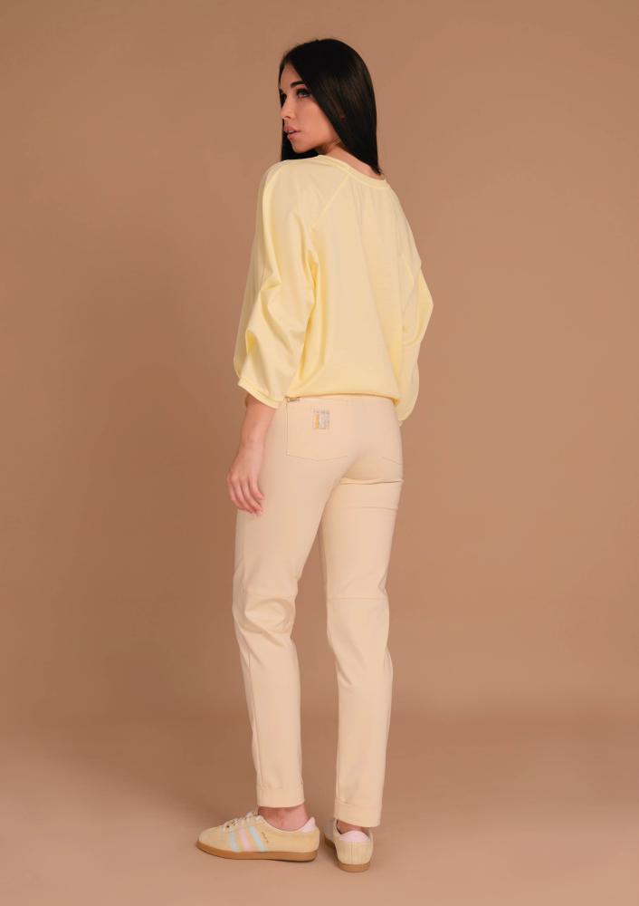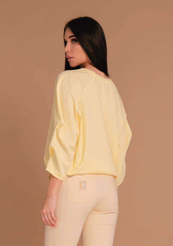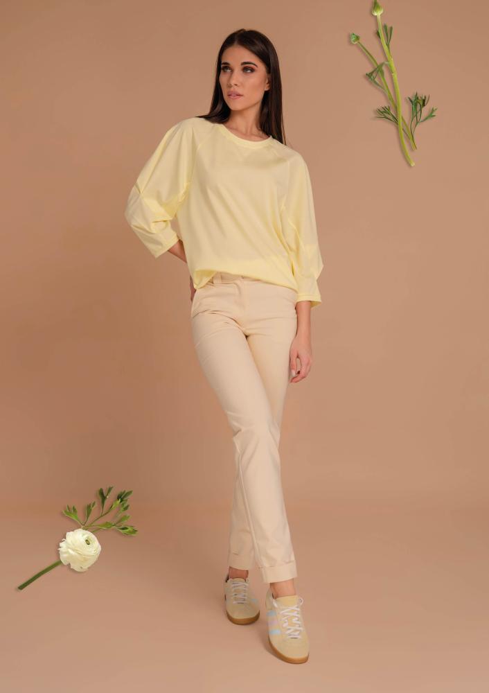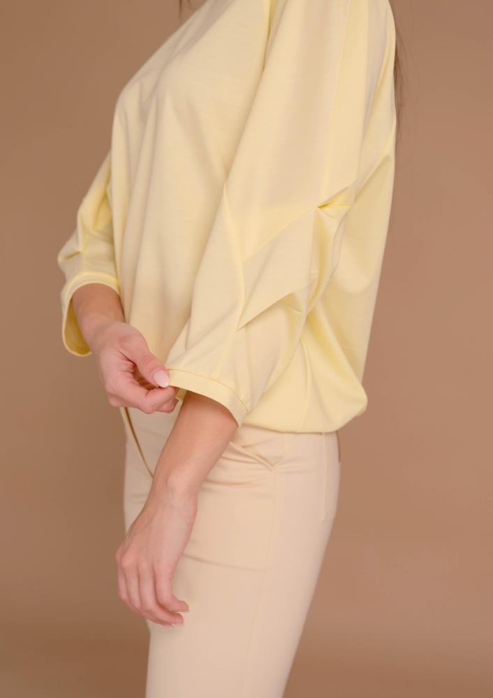 Sárga színű, kevert szálas Magenta felső, laza fazonú, ujján hajtásokkal díszített, kerek nyakkivágással.