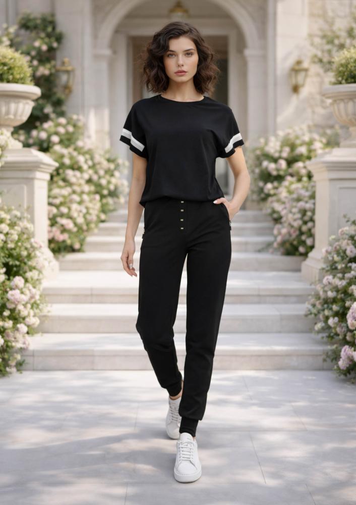Fekete színű, Magenta felső, laza fazonú, kerek nyakkivágással, rövid ujjal. Hátul rávarrt Magenta márkajelzés.