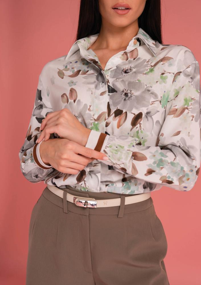 Mintás, Magenta ing, laza fazonú, elején gombos záródással, ujja alján passzéval díszítve. Oldalán rávarrt textil Magenta márkajelzés.