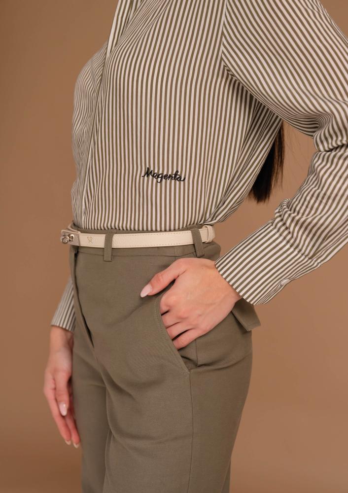 Mintás, vászon Magenta ing, laza fazonú, gallérral, elején gombos záródással, széles mandzsettával. Elején hímzett Magenta márkajelzés.