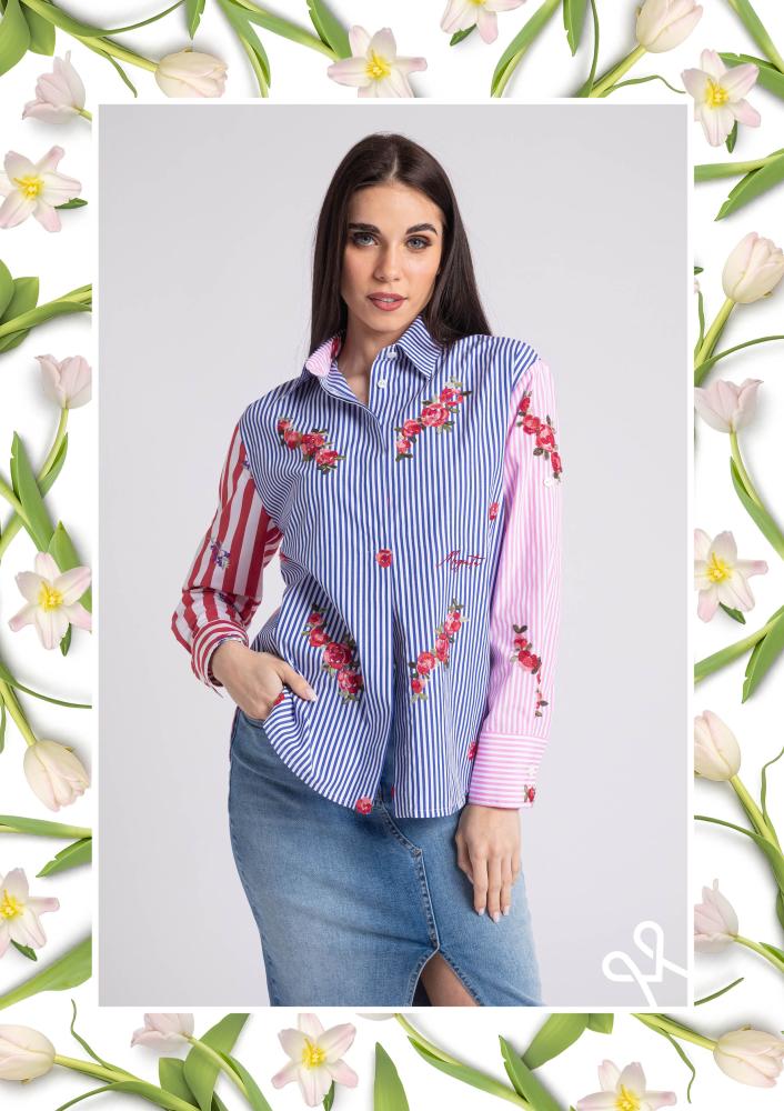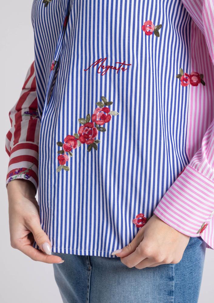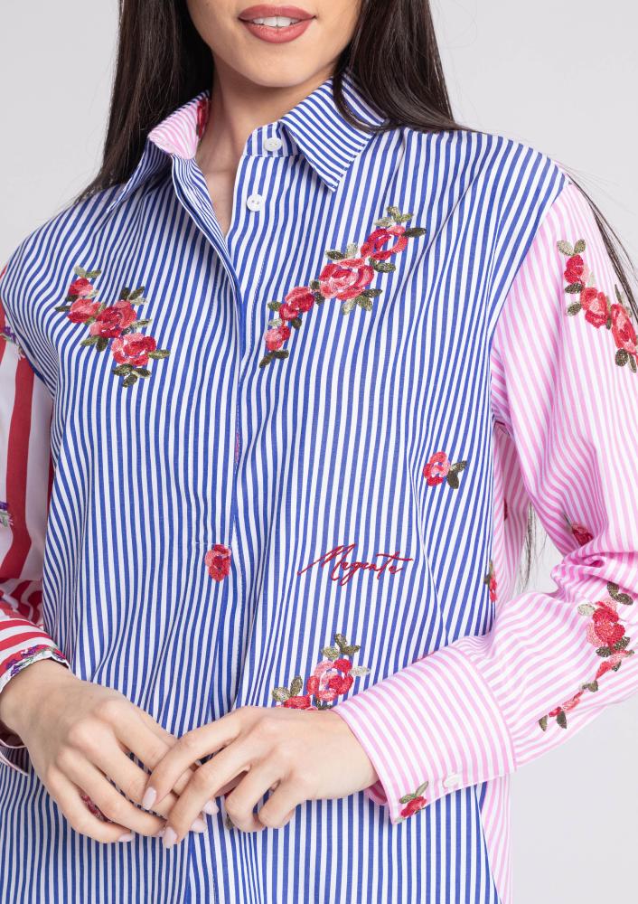 Mintás, pamut Magenta ing, laza fazonú, elején gombos záródással, bővebb ujjal, gombolható mandzsettával. Oldalán rávarrt textil Magenta márkajelzés.