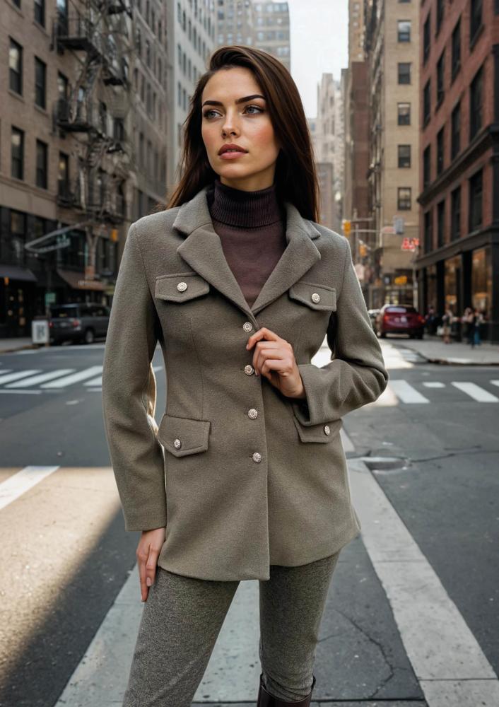 Zöld színű, Magenta szövetkabát, szűk fazonú, kihajtós gallérral, elején gombos záródással, zsebekkel. Oldalán rávarrt textil Magenta márkajelzés.