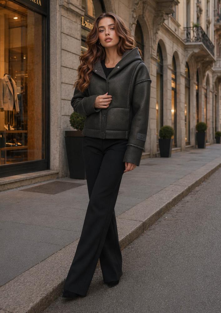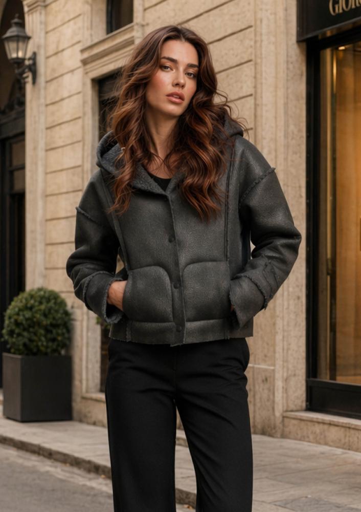 Barna színű, műirha Magenta kabát, laza fazonú, kapucnival, elején patentos záródással,zsebekkel. Ujján rávarrt Magenta márkajelzés.