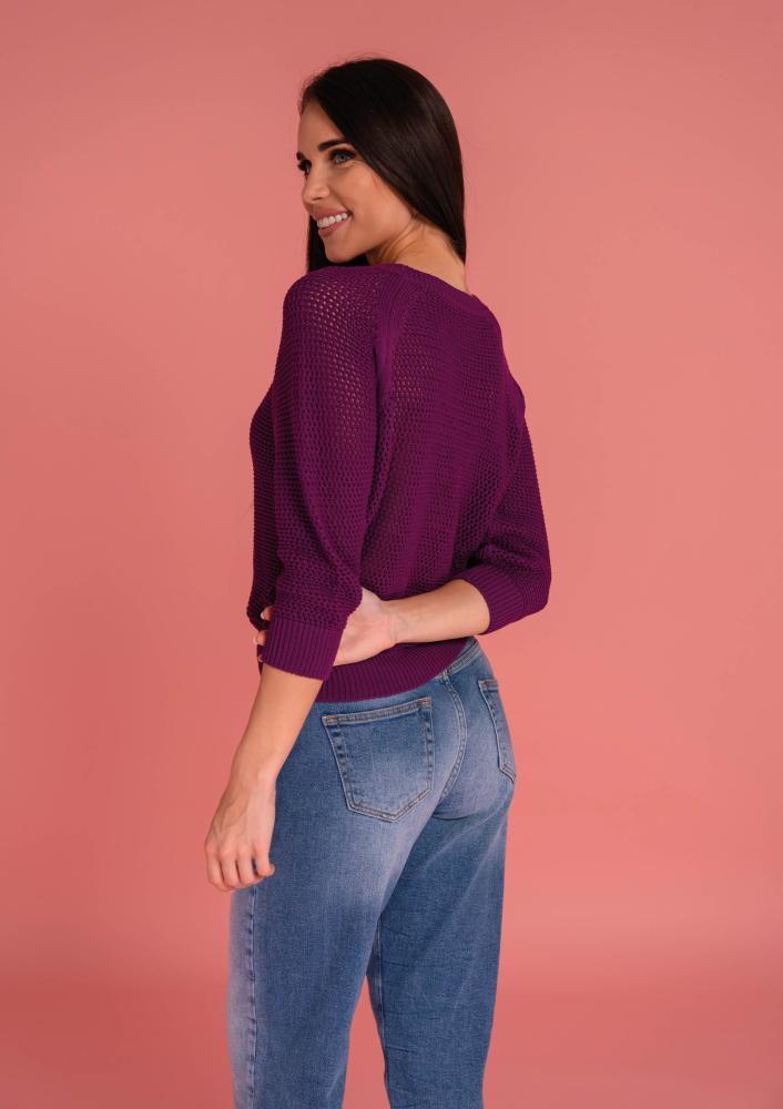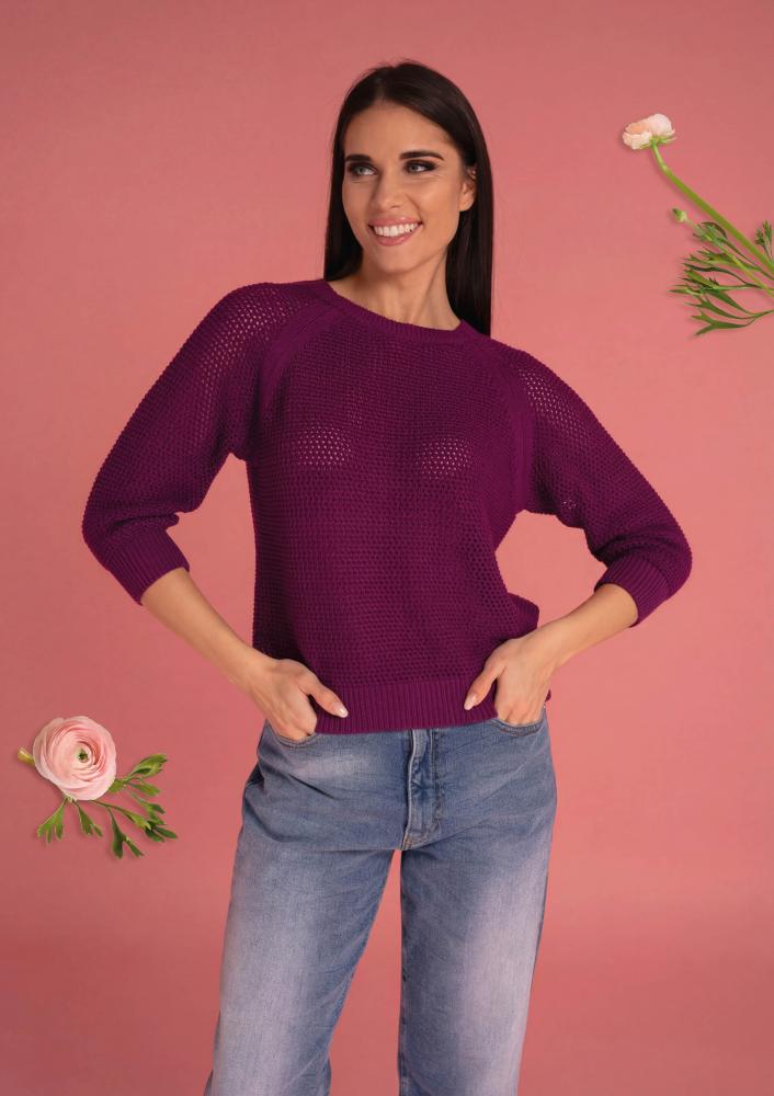 Burgundi színű, elasztikus kötött Magenta felső, laza fazonú, kerek nyakkivágással, hosszú ujjal.