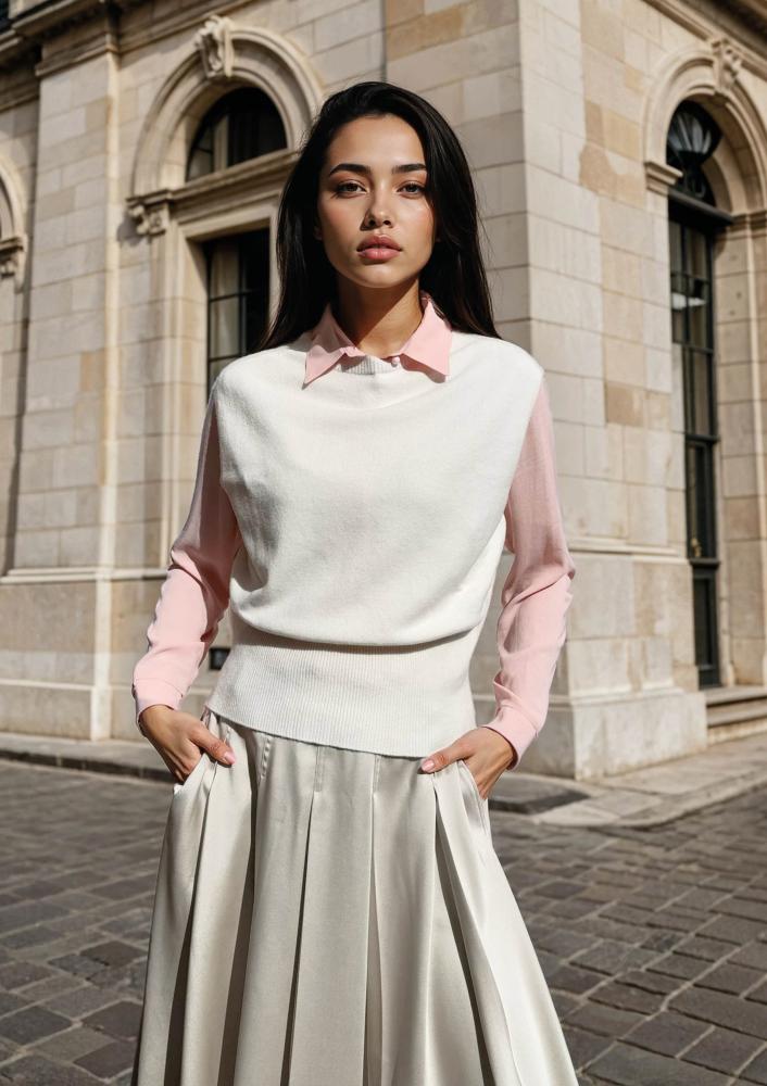 Vaj színű, Magenta kötött mellény, kerek nyakkivágással, belebújós fazonú. Vállán rávarrt Magenta márkajelzés.