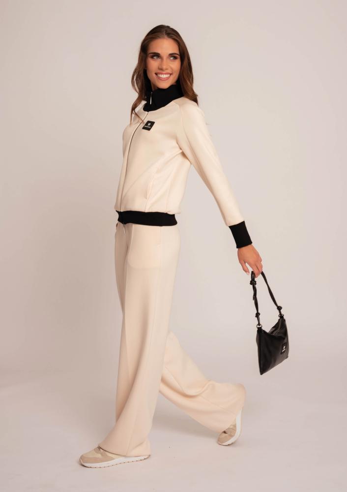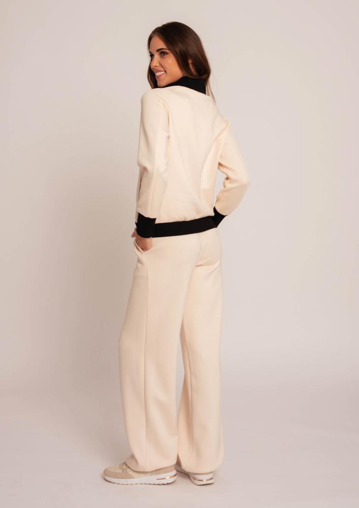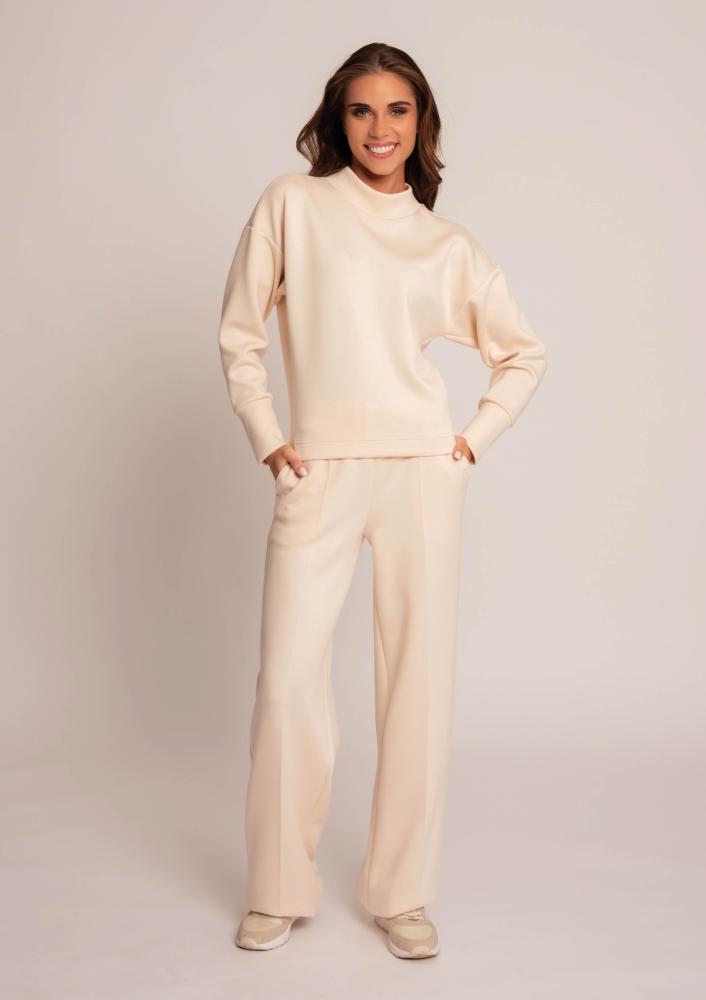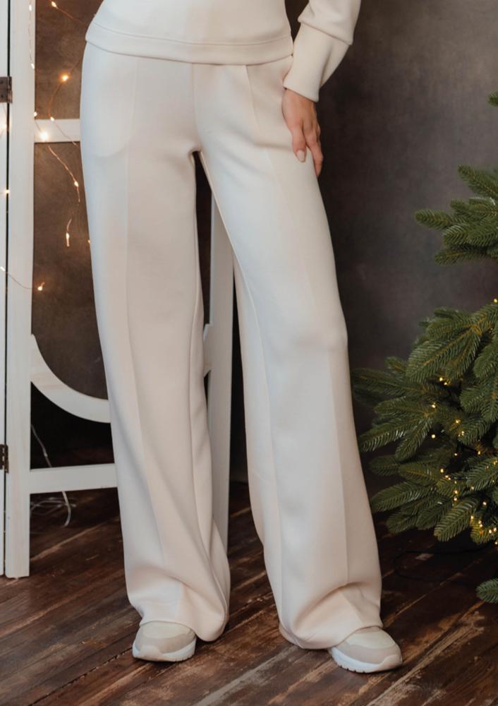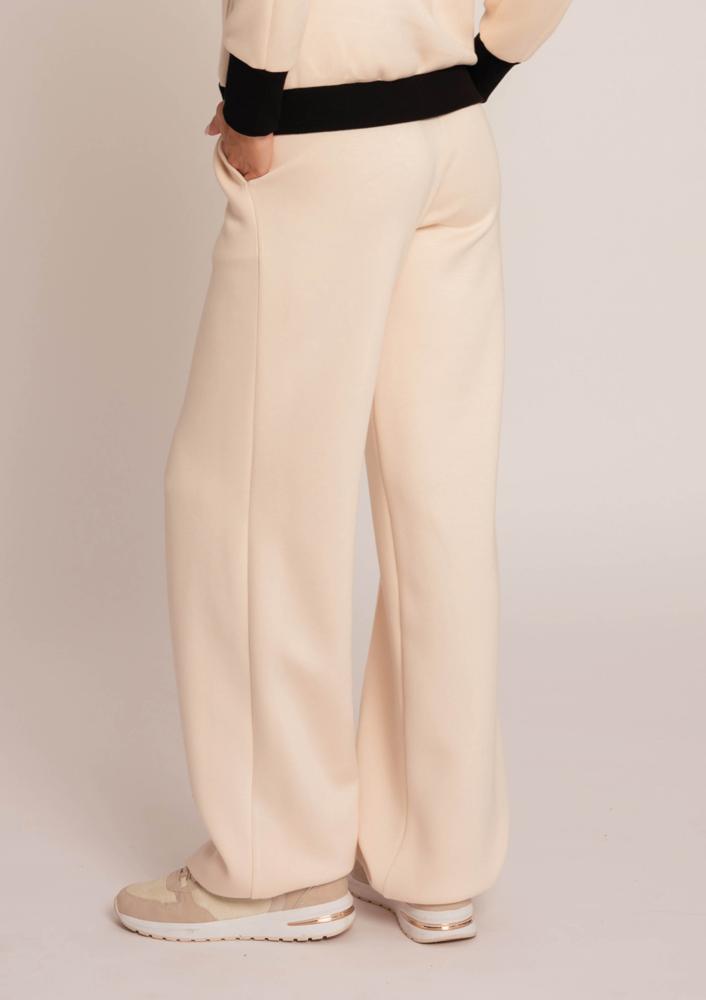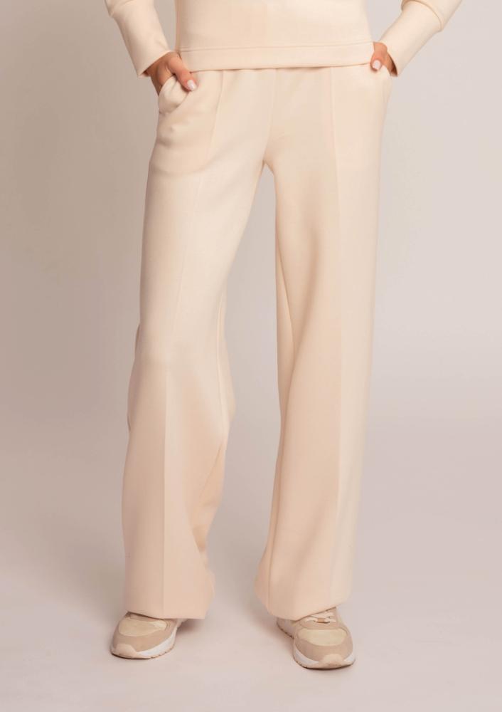 Vaj színű, kevert szálas Magenta nadrág, egyenes fazonú, gumis derékrésszel, oldalán zsebekkel.