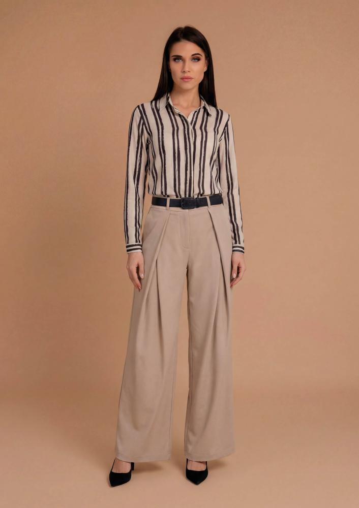 Fekete színű, kevert szálas Magenta nadrág, egyenes fazonú, gumis derékrésszel, oldalán zsebekkel. Hátul filmnyomott Magenta márkajelzés.