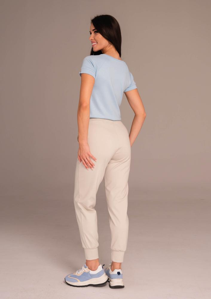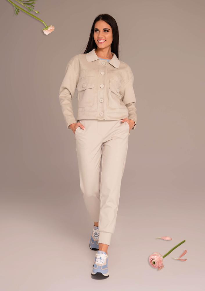 Vaj színű, punto Magenta nadrág, szükülő szárú, gumis derékrésszel, zippzáras zsebekkel, alján passzéval. Oldalán rávarrt textil Magenta márkajelzés.