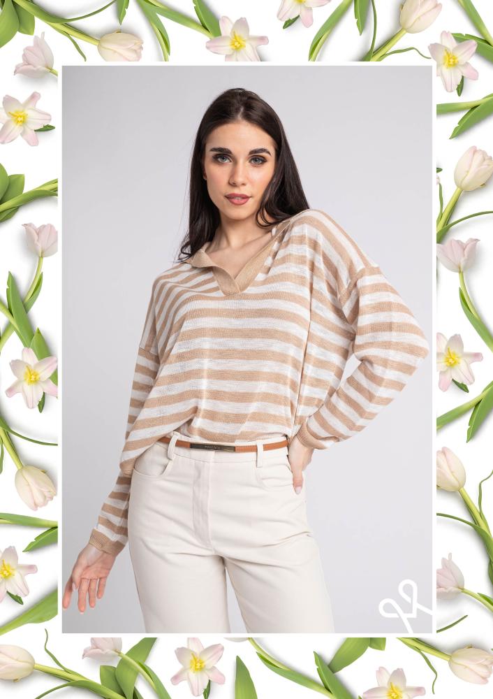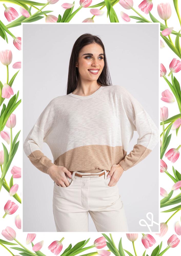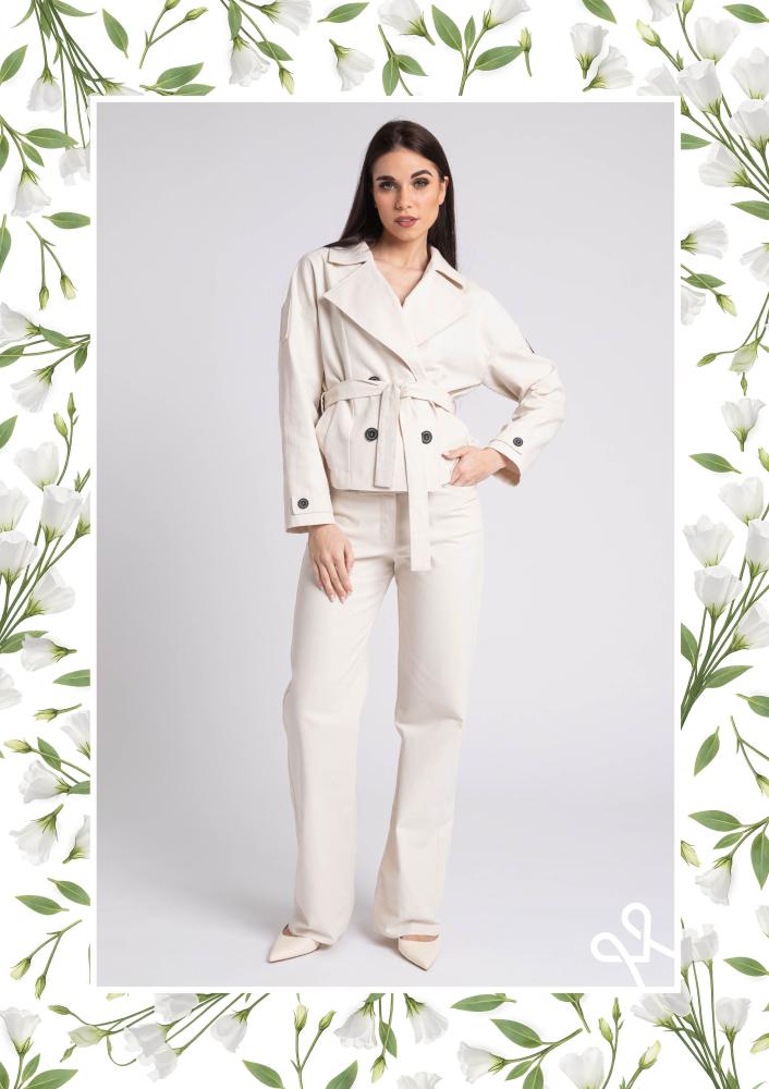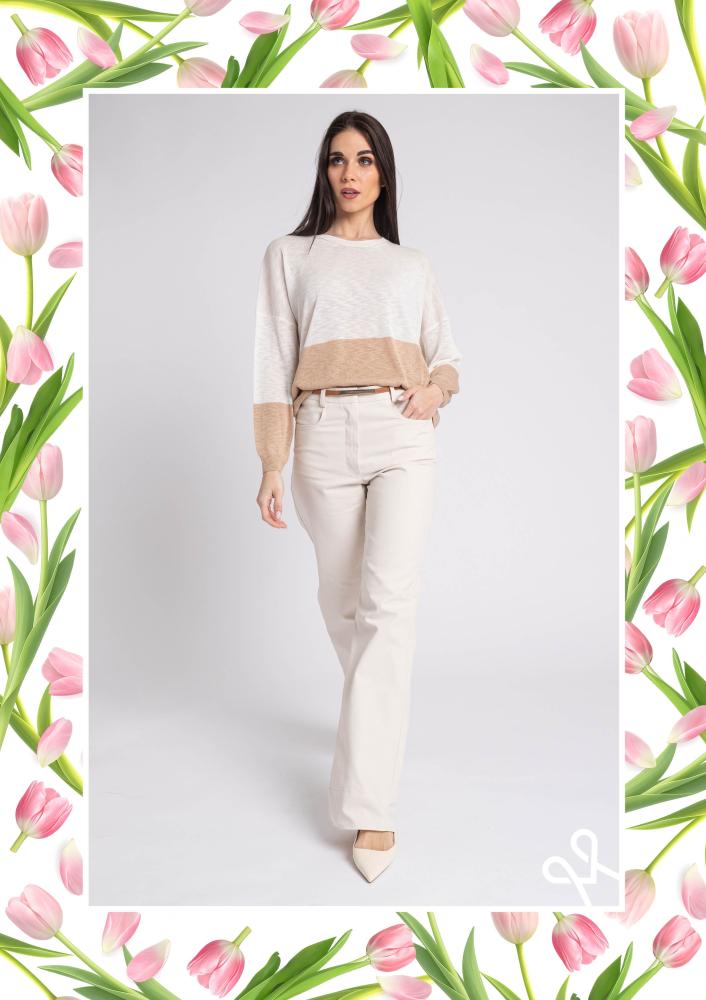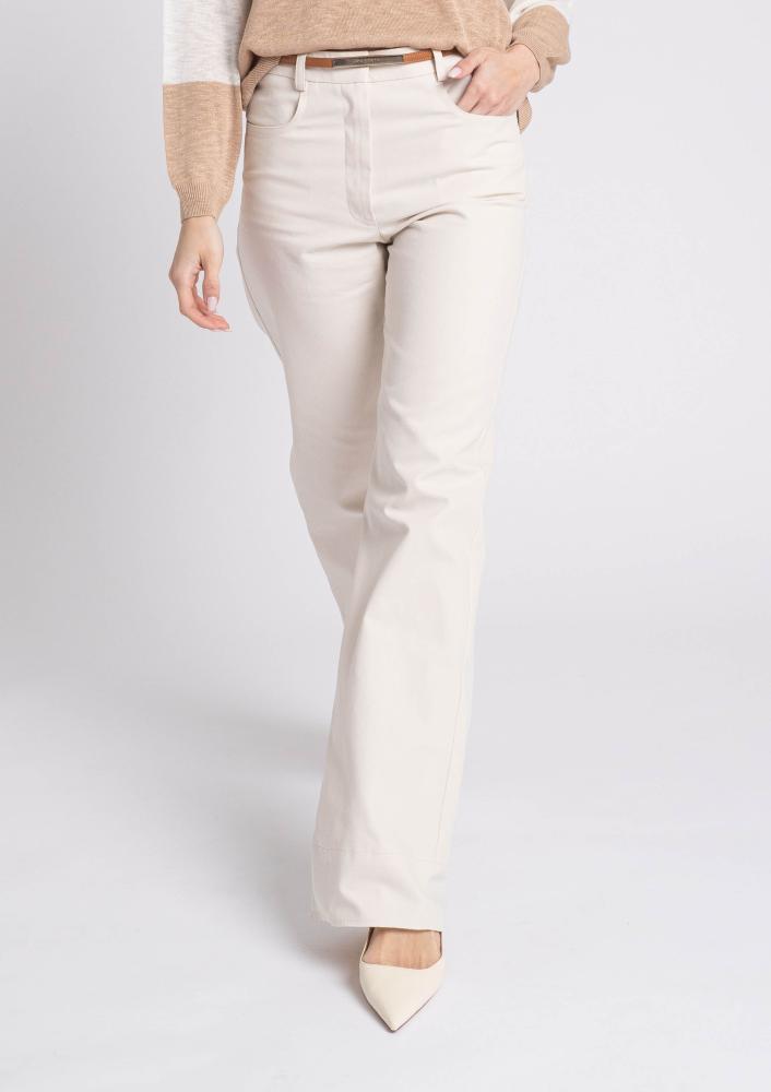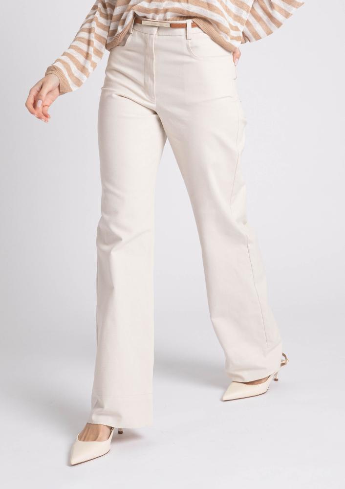 Vaj színű, vászon Magenta nadrág, bővebb szárú, elején kapcsos és zippzáras záródással, övbújtatós derékrésszel, zsebekkel. Oldalán rávarrt textil Magenta márkajelzés.