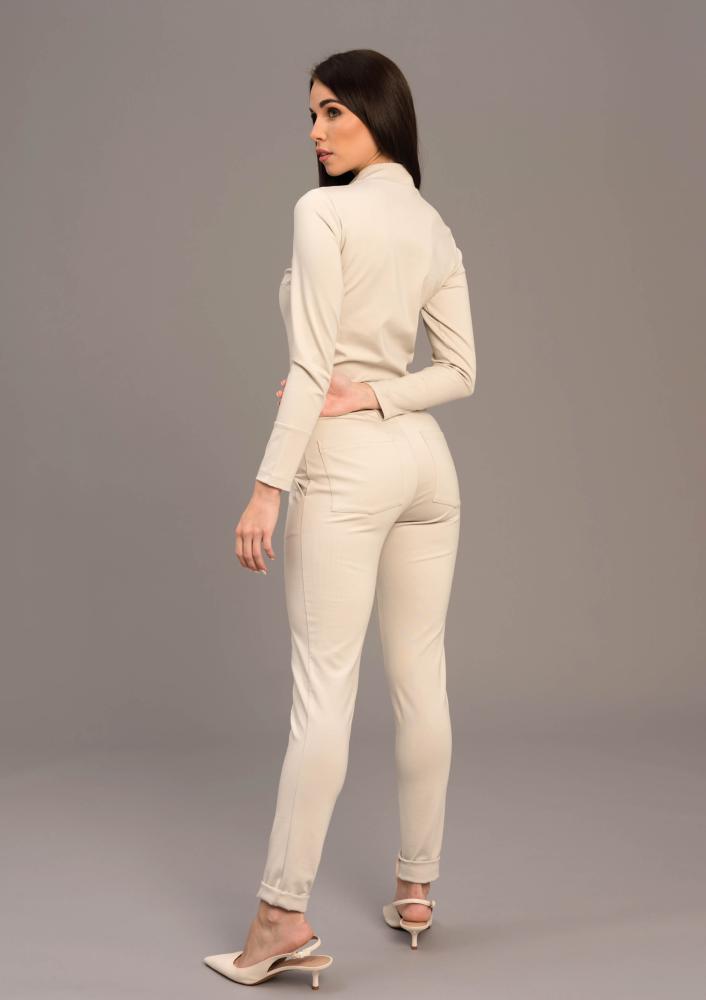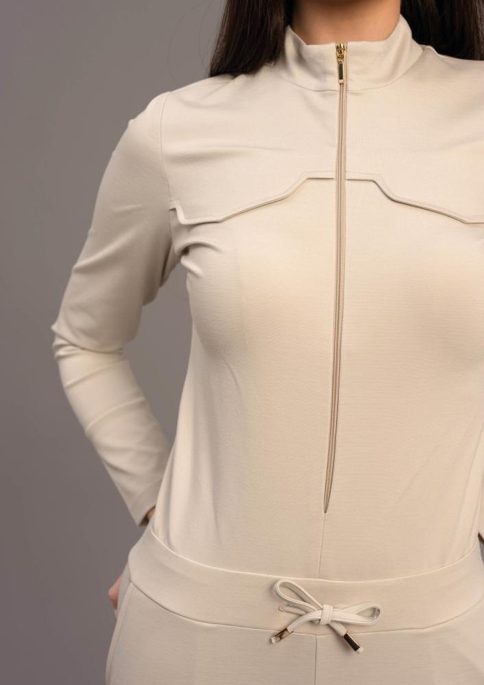 Vaj színű, Magenta overál, elején zippzáras záródással, derékrészen megkötővel, zsebekkel.