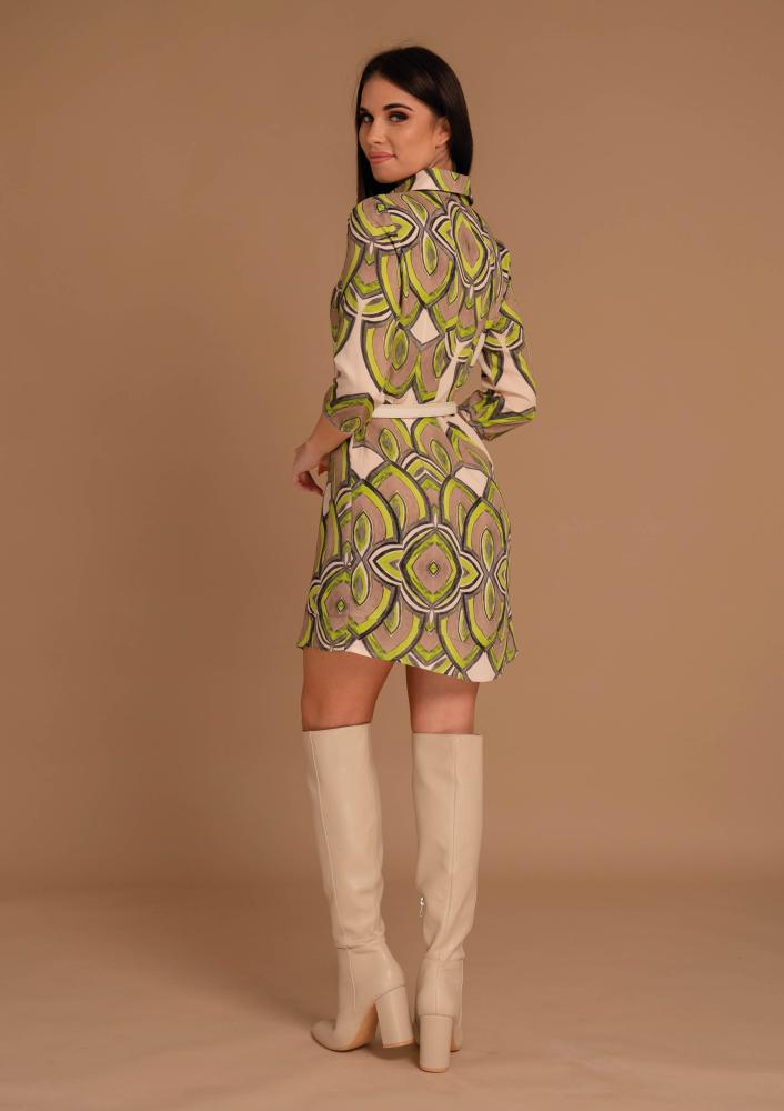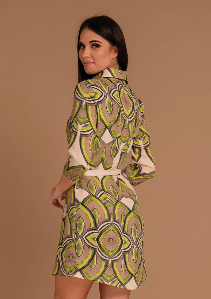 Mintás, viszkóz vászon hatású Magenta ing ruha, elején gombos záródással, térd fölé érő hosszal. Oldalán rávarrt textil Magenta márkajelzés.