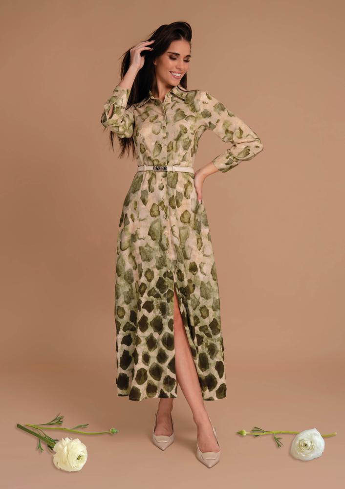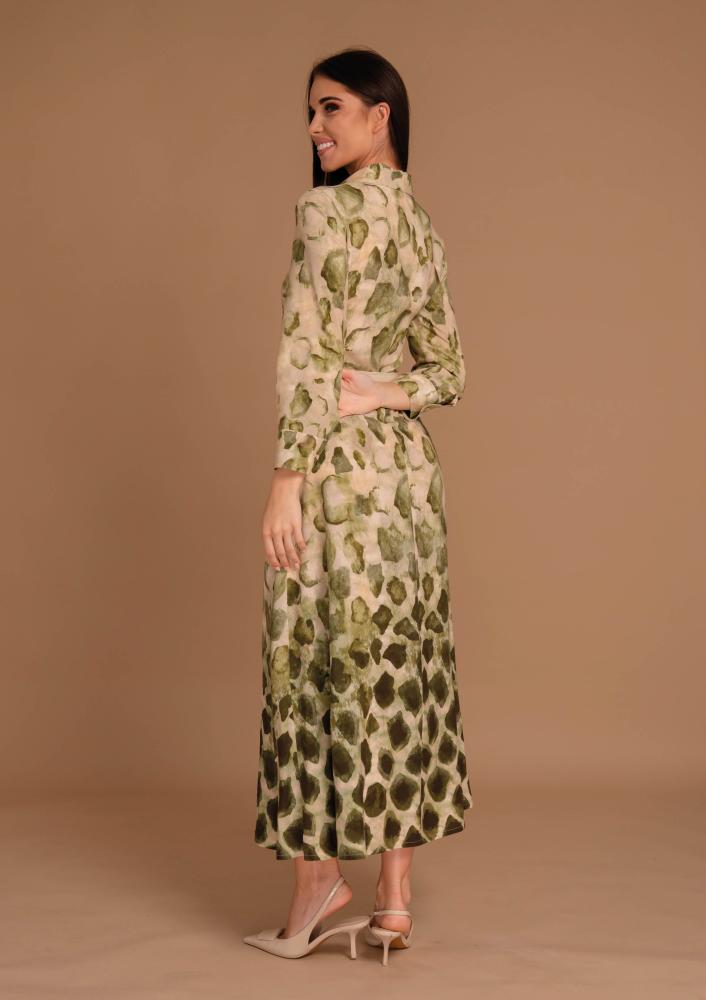 Mintás, Magenta ruha, laza fazonú, elején gombos záródással. Oldalán rávarrt textil magenta márkajelzés.