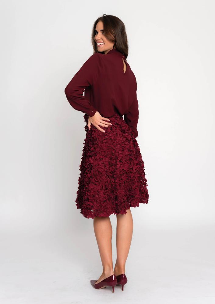 Bordó színű, Magenta tüll szoknya, A-vonalú, hátul zippzáras záródással. Oldalán rávarrt textil Magenta márkajelzés.